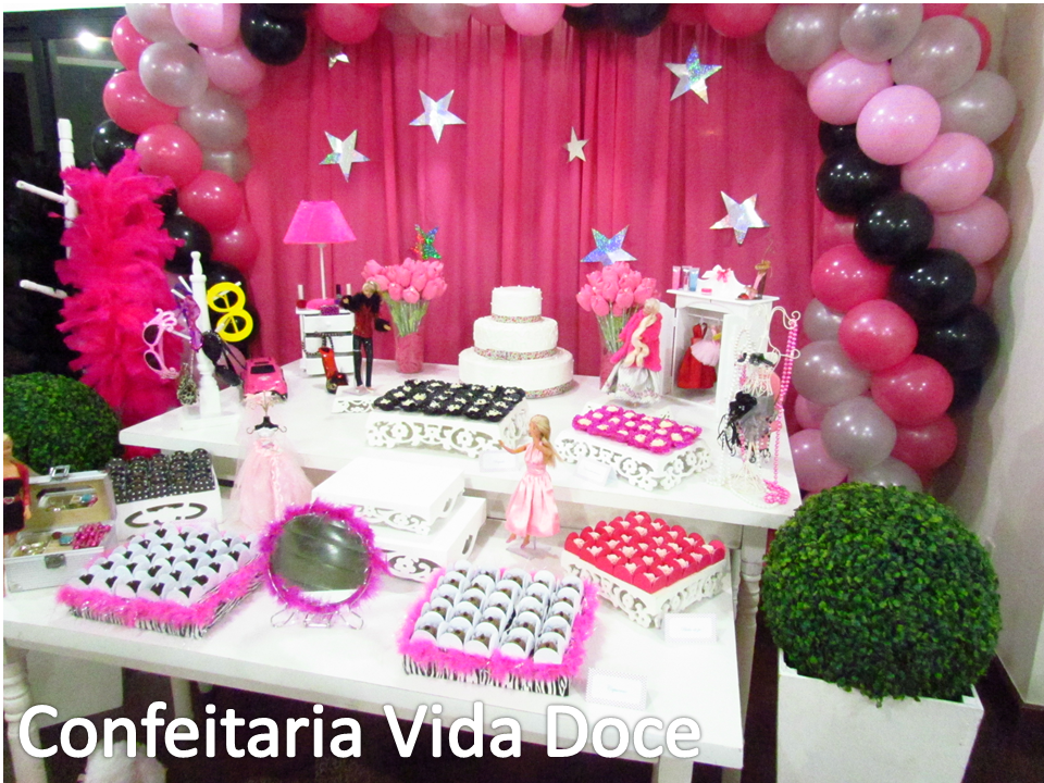 Na mesa coloquei cakepops, cupcakes, tubinhos com confetes, bisnagas de brigadeiro, copinhos, forminhas decoradas....os produtos ficaram bem delicados.